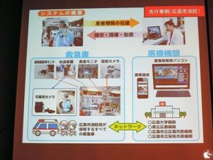 富士フイルムと開発したiPhoneなどのスマートフォンを利用して脳卒中の救急医療をサポートする「i-Stroke」を紹介した。