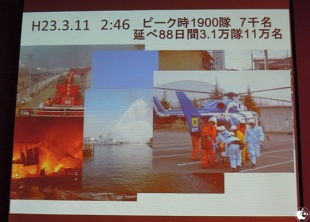 東日本大震災では、ピーク時1900隊7000名、延べ88日間31,000隊11万もの大規模支援を行った。