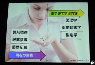 在宅医療において、処方した薬が正しく飲んでることが前提で診断を行っているが、必ずしもそうではないという問題があると説明し、薬剤師は医師から指示を受けた薬を渡すだけの立場だけでしがないが、薬学部で学んできた知識を活用した在宅医療介護を行えるようにすることで、在宅介護医療における医師の補足することが可能になると考え活動を行っていると説明した。