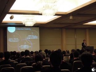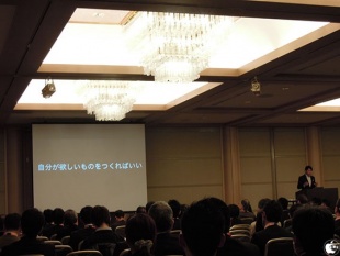 Appleが最初にiPodを出したときに「21世紀のウォークマンだ」と言っていたが、途中からそういったことは言わなくなったが、まったく新しい物を生み出した時に、それの使い方や楽しみ方を訴求し教育することが必要になるが、そういったユーザーが創造出来ない物を世に出すには「自分が欲しいものを作れば良いんだ。」とスティーブ・ジョブズは言っていたと話し、iPhoneをこの世に出した時に、使いにくいハードウェアテンキーボードを外してくれなどという市場アンケートは無く、実際に外してソフトウェアキーボードでもって世に送り出されたiPhoneは、想像を超えた創造物だと話し「未来予測することではなく、未来を想像することが重要だ」と話していました。