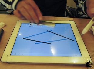 この直線書きは、2本の指を使った「Touch Slide」でも利用可能ですが、方向によって指を捻って作業をしなければならない場面が出るため、定規を使って直線を引く作業が多い方には、Adobe Slideを使用したほうが自然かもしれないと評価されていました。
