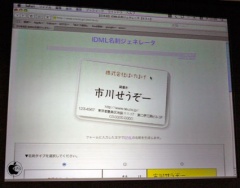 最後に、おまけであり最大の目玉という、Web上でIndesignのドキュメンの作成や編集が出来る「IDML名刺ジェネレーター」を初公開し、「すでに、Adobe InDesign Serverを使えばネット上での編集はできたが、Adobe InDesign Serverは高価。また、IDMLならフォントのライセンスが必要でないので気軽に使うことができる」と説明し、Tipsは終了。そして、「Tipsは単に便利を追求するだけじゃなく、創造。あなたにもあなたのTipsがある」と語った。