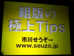 自己紹介の後、Adobe InDesign CS2,3,4で使える以下のチップスを披露されてました。