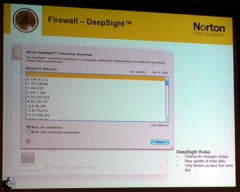 全てのノートン製品の中で、ノートン・インターネットセキュリティ for Macだけに追加されている新しいファイアウォール機能「DeepSight」は、世界中のトラフィックを調べているネットワークオペレーションセンター部門が協力し、既知/未知の脆弱性や現在の世界的な攻撃活動をデータ化し、それらの情報を早期に注入してユーザーが意識することなく未然に防ぐ機能だそうです。