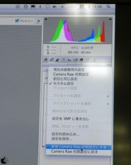 次に、カメラをニコンのD3Xと、Adobe Brige CS4を使い、同じ撮影を行った場合のワークフローの違いを説明していました。