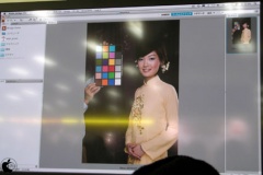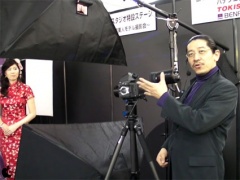 ちょうどブースに寄ったら、日本広告写真家協会の理事をされてるBOCO塚本氏と、アップルの「イメージングの世界を拡げる Mac OS X」でも紹介されている、エヌ・フォトの永嶋サトシ氏の2人によるスタジオ撮影デモが行なわれていました。