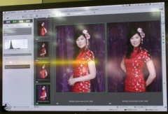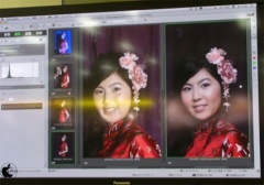 中国留学生の方をモデルにして撮影が進められました。最初は、コダック グラフィック コミュニケーションズの3,330万画素プロフェッショナル向け中判デジタルカメラシステム「Leaf AFi 75」と、ワイドトレードが販売する「TOKISTAR e-Light m200」を2灯使って行なわれました。