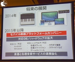 現在 MIDI over Bluetooth に対応している C.24 と連携できるデバイスとして確認しているのは iPad、iPhone の他、OS X Yosemite 搭載マシン。これら以外のAndroid や Windows への対応は 2015年内の実現を目指して開発中ということでした。