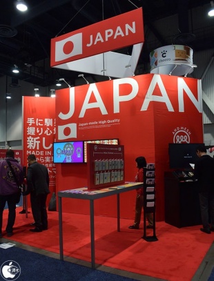 日本の国旗の日の丸の赤を強調したブースで、漢字を使った日本語による製品アピールを行なうなどしていました。