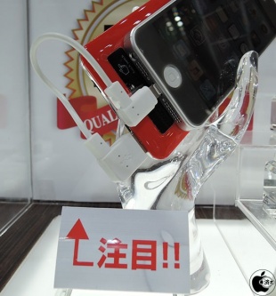 iPhone 6をバッテリーで樹電する際に便利な、L型コネクタを採用したLightningケーブル「MUJ-S10L」も展示されていました。