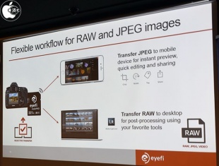 今日発表された Eyefi Mobi Pro カードにはEyefiクラウドの1年分使用権が同梱されており、Eyefiクラウドには JPEG だけでなく、RAW、映像も容量無制限で保存が可能です。