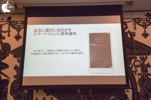 Netatmo社 リード・プロダクト・マネジャー ロマン・パオリ氏は、この welcome に電源ケーブルを接続し、iOS 搭載機などのスマートフォンとペアリングをすることで、iPhone/iPadアプリ「Netatmo Welcome」を利用して、常時 内蔵カメラで周囲を撮影し、顔認識を行なうようになると説明しました。