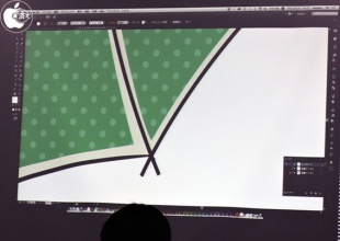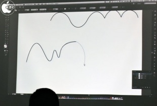 カンプ作業をiPad上で行なえるアプリ「Adobe Comp CC」で、手書きした線や形を認識し、そのタッチジェスチャーを認識して作業を行なえることをデモで紹介していました。