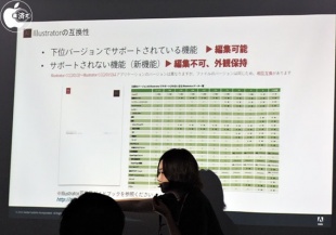 アートワークについては「Adobe Illustrator CC 2014 互換性ガイドブック」を参照し、下位バージョンで作成されたデータを受け取る場合の参考にしてほしいと説明していました。