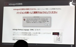 Adobe InDesignの互換性に関して、従来通り、制作したバージョンでのみ互換性が保持される形で変更されていないため、運用方法に変更はないと説明していました。