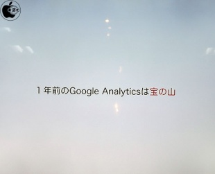 1年前のGoogleアナリスティックスは宝の山で、それを分析することで、昨年の傾向が把握できるので、それを今年の資料として分析することが重要だと話してました。