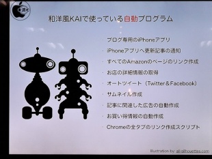 専用のブログアプリ「和洋風KAI for iPhone」をApp Storeに出したことによって、RSSフィードや他サイトからの流入と比べて10倍以上の流入することが分かっているそうで、できれば、自分のブログ専用アプリを開発した方が良いと力説してました。