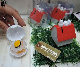 スヌーピーのドッグハウスの中にステレオイヤホンを収納した「ピーナッツ ドッグハウスケース付きステレオイヤホン」や、ぐでたまの「たまごケース入りステレオイヤホン」なども展示されていました。