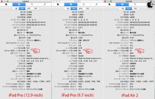 iPad Pro (12.9-inch)、iPad Pro (9.7-inch)、iPad Air 2の写真にあるExif情報からレンズ焦点距離を確認してみます。