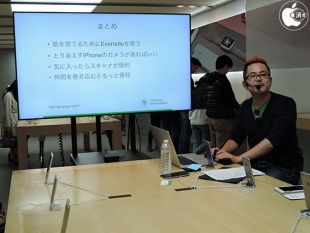 2016年3月27日にApple Store, 名古屋栄にて、ごりゅご.comの五藤隆介氏を講師に迎え「クラウドを利用して始めるペーパーレス生活」が行われました。