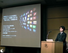 展示会場のブースで、昨今のデジタル一眼レフカメラの動画撮影機能への取り組みとして、アドビ システムズはどう考えているのか質問したところ、一部のカメラマンの方々から、デジタル一眼レフカメラで撮影した動画をAdobe Photoshop Lightroomを使って管理したいという意見があることは認識しているが、それだと製品としてのコンセプトから外れてしまうそうで、また、Adobe Photoshopで動画編集を行ないたいという意見もあるかもしれないが、Adobe Premiere Proで作業を行った方がよく、デバイスとしてカメラを使用したから、カメラ編集ソフトで全てを行なうという提案は市場が求めていることなのか?と考えると疑問で、静観している状態だとコメントしてました。