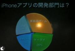 iPhoneアプリの開発部門について質問したところ、家庭用ゲーム部門が32%、携帯部門が26%、携帯型ゲーム部門が20%という結果となり、これは、ダウンロード販売ソリューションを持っているPS3、Xbox 360、Wiiが尻窄み傾向にある中、マルチプラットフォームを考えた場合、同じ部門が開発するのが効率が上がることが理由ではないかと分析していました。