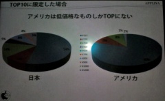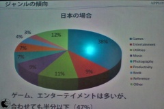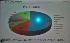 それに対し、アメリカのApp Storeだと、圧倒的にゲームとエンターテイメント系の割合が大きくなると説明していました。