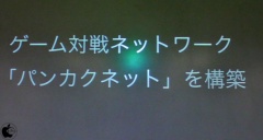 ゲーム対戦ネットワーク「パンカクネット」を構築し、数分で遊べるネットワーク対戦ゲームを無料配付し、アバター、アイテム課金、プレミアム課金などによって収益を上げていこうと考えていると説明してました。