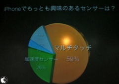 iPhoneでもっとも魅力あるセンサーという質問に対しては、マルチタッチが59%、加速度センサーが26%という結果だった。