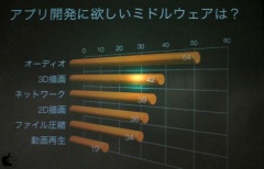 それらの結果から、ゲームクリエイターはiPhoneに興味津々で、開発しやすい環境やミドルウェアを欲している。Macでの開発、マーケティング手法が心配ということがわかったと結論づけていました。