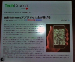 最近は、広告ネットワークが充実してきていて、無料のiPhoneアプリでも、アプリ内に広告を入れる事で、収益を上げられるビジネスも出てきていると紹介。