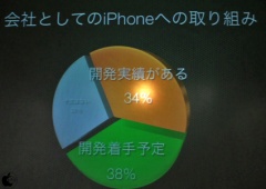 CRIが行なったゲーム開発社向けのアンケート結果「ゲーム開発者におけるiPhone/iPod touchアプリ開発についての調査報告書」を紹介し、iPhoneに興味があると答えたのは97%にも達し、開発実績があると答えたのが34%、着手予定と答えたのが38%だったと紹介していました。