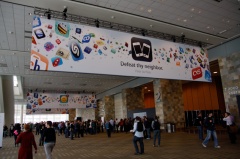 WWDC 2009の基調講演終了後、会場のフロアには、iPhone OS 3.0と、Mac OS X Snow Leopardに関する巨大バナーが出現してました。