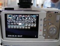 プレビューモードの切換えは、サブダイヤルを回す事で、拡大>等倍>サムネイル一覧>カレンダーといった順で表示されます。