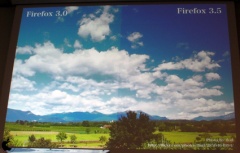 今回のセッションでは、Firefox 3.5では、ICCプロファイルのサポートが追加され、Firefox 3.0とで写真を見た場合、ICCプロファイルを埋込まれた画像データでは見た目が変わると説明していました。