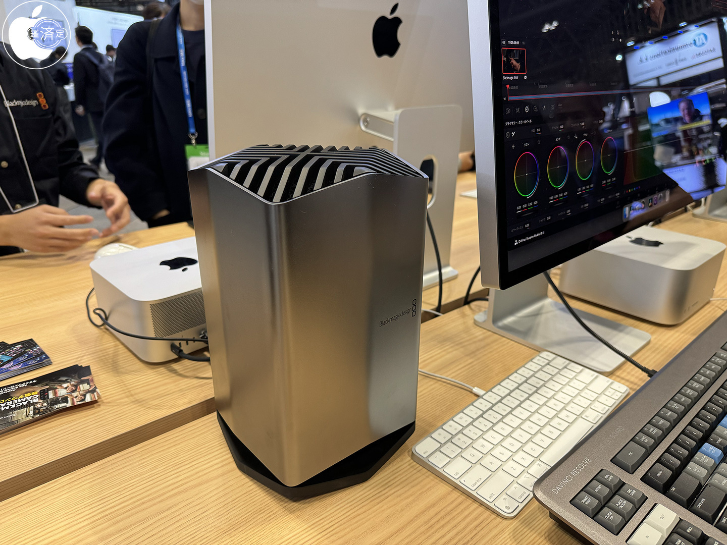 Appleイベント撮影の裏側を紹介する「Behind the scenes: An Apple Event shot on iPhone」で使用されていたBlackmagic Designのカメラアプリ「Blackmagic Camera」や、動画編集ソフトウェア「DaVinci Resolve Studio」の展示が行われていました。