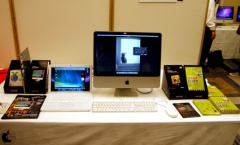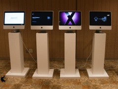 今回は、Mac OS X Snow Leopard発売開始日と重なったため、アップルソリューションブースにおいて、展示されているMacintoshがMac OS X Snow Leopardがインストールされて展示が行なわれていました。