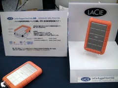 ラシージャパンが、FireWire 800接続に対応した対衝撃ポータブルHDドライブ「LaCie Rugged Hard Disk」などの展示を行っていました。