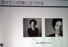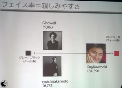 顔写真をアイコンに使用する場合、Gladwell、ryuichisakamoto、GuyKawasakiを例にとり、前者2名がモノトーンの全身写真(坂本龍一氏は、現在とは異なります)なのに対して、後者のGuyKawasaki氏は、優しい表情をしたアップの写真のため、Twitterで話しかけられてるような印象を受けるのでとても良いと説明してました。