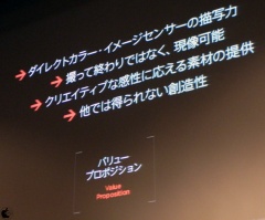 そうしたイメージの中で、シグマの良さを掘り下げてみると、レンズメーカーとして歴史が長く、ズームレンズに関する技術や、センサーといった技術力は世界に誇れるレベルだったことが分かり、バリュープロポジションとして、センサーの描写力と撮って終わりではない現像処理機能によって、カメラだけで写真が生成することが出来ることなどをピックアップし、これをアピールするよう考えたそうです。