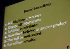 リデザインは、表面を変えるということではなく「プロダクトを変える」というスタンスでなければ意味はないとし、インナーブランディングとして、社員に対してブランディングし、編集長だけでなく、関わる全ての人達と話しをする必要があり、それによって、より多くのアイデアと、これに関わっているという意識を持たせることによって,会社全体のモチベーションを上げることが最も重要な要素であると説明してました。