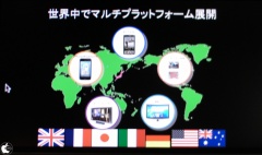 App Storeで、50タイトル以上リリースしていて、無料版を含めると70タイトル以上にもなり、世界中のApp Storeにおける有料アプリランキングに20タイトル以上がトップ10入りを果たしていると説明していました。