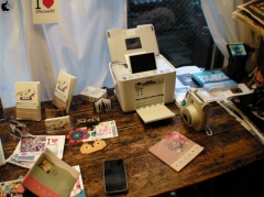 ギャラリーには、マイクロテックのiPhoneアプリ「ePrint」をダウンロードし、Wi-Fi接続で、セイコーエプソンの「カラリオ ミーから、iPhone内の写真を印刷して壁に貼ることも出来るようになっていました。