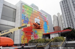 AppleのSpecial イベントが開催されるYerba Buena Center for the Artsでは、Appleが送った招待状で使われたデザインの装飾作業が行われていました。