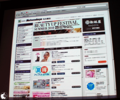 豊田 有氏は、CMSを利用したWebサイト制作、モバイルプロモーションが増えていると話し、「松坂屋名古屋店」を事例に、ワークフローの説明を行っていました。