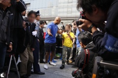 多くの報道カメラが集まる中に、Appleもオープンを撮影するためのカメラクルーがいました。