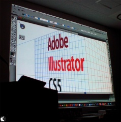 あと、Adobe Illustrator CS5 日本語版の遠近グリッドは、Adobe Photoshop CS3から搭載されたバニシングポイントの用に見えるが、角点で角度が自動的に変わらず、また、画像も配置することは出来ないと説明していました。