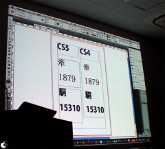 アドビ システムズの岩本氏が、Adobe Creative Suite 5で、フォントデザインを2書体変更したと説明していました。