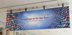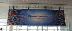 昨年は、天井に、Mac OS X Snow LeopardとiPhone OS 3.0のバナーが吊るされていましたが、今年は、iPhoneアプリのバナーのみとなっています。