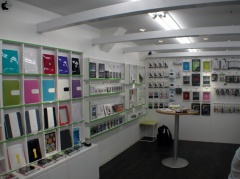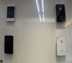 お店の外には、iPhone 4のブラックと、まだ販売されていないホワイトの外側パネルが展示されていました。